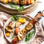 Balsamic Peach Chicken Kabobs include an easy marinade, tender chicken, fresh peaches, basil, and a drizzle of yummy balsamic glaze. This is the perfect entree for entertaining during the warmer months!