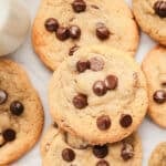 These dairy free chocolate chip cookies have the perfect texture with crispy edges and a chewy middle. They require only 9 simple ingredients and no chill time! Plus they're ready in less than 20 minutes!