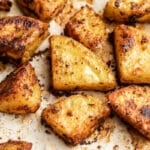 These perfect roasted potatoes cook in the oven until crispy and golden brown. You'll love their creamy centers! This is an easy recipe that deserves a spot in your weeknight dinner rotation.