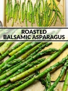 Roasting fresh asparagus with a little balsamic vinegar gives it a tangy flavor. It’s a healthy side dish thats fast and pairs well with everything! You’ll love this simple recipe.