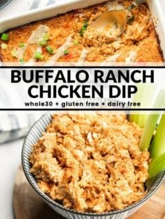 This Dairy Free Buffalo Ranch Chicken Dip is inspired by my Buffalo Ranch Chicken Casserole. Both are dairy free and very satisfying!