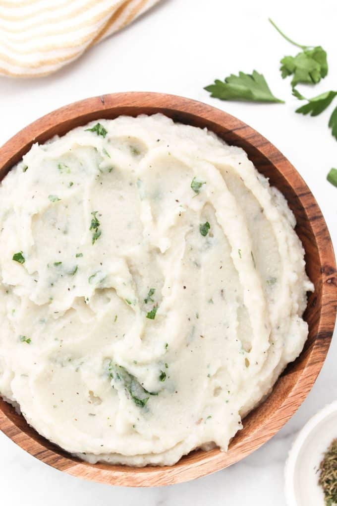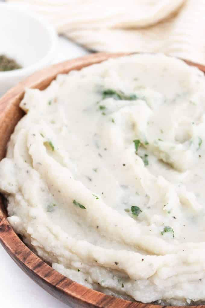 So why cauliflower? Cauliflower is high in fiber and B vitamins. Adding cauliflower to your mashed potatoes means your side is lower in calories, lower in carbs (if you’re into that), and just overall more nutritious. You know I love any opportunity to sneak in some extra veggies.