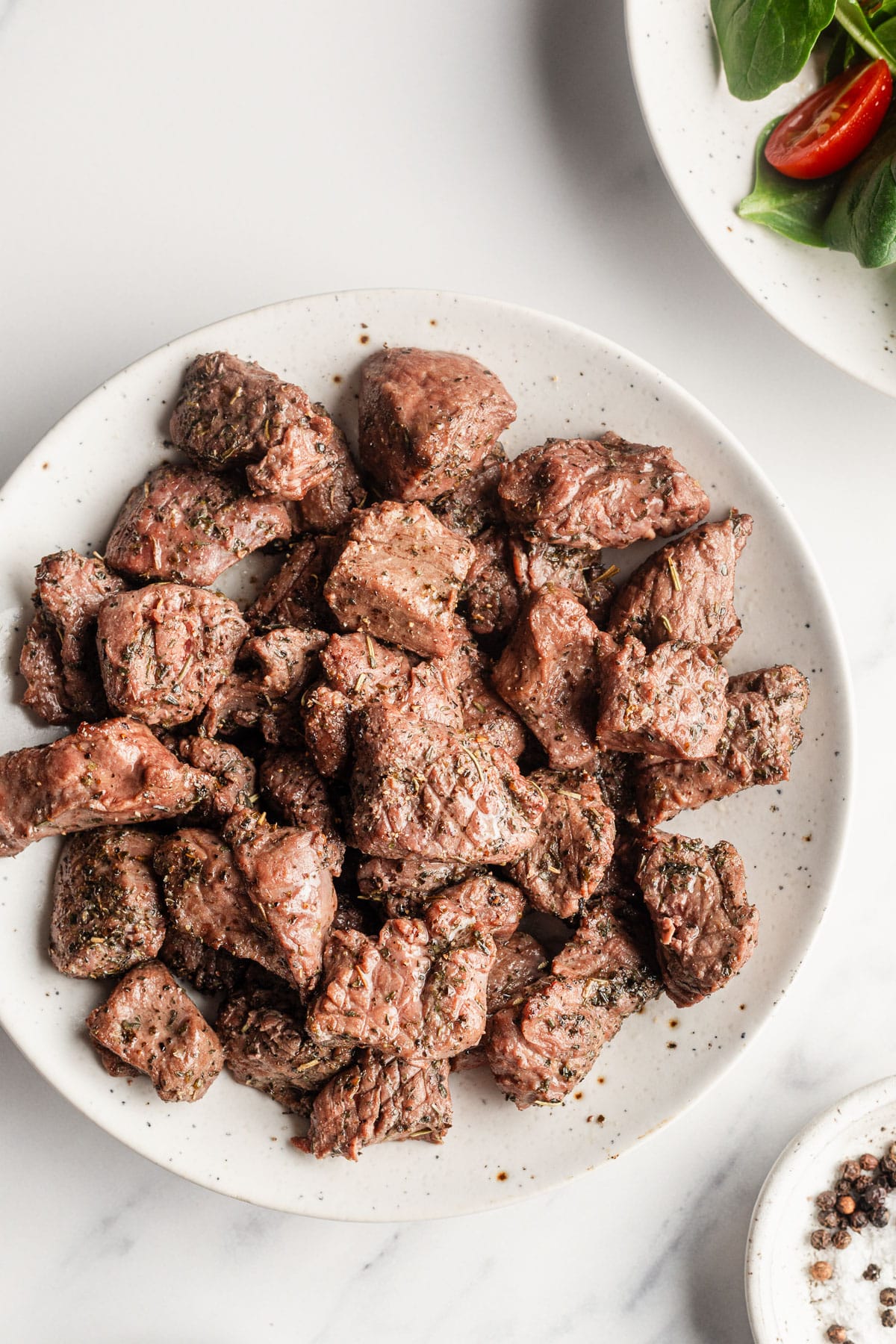 These juicy steak bites cook quickly in the air fryer. They’re tender, flavorful, and simply seasoned! Ready in just 15 minutes!