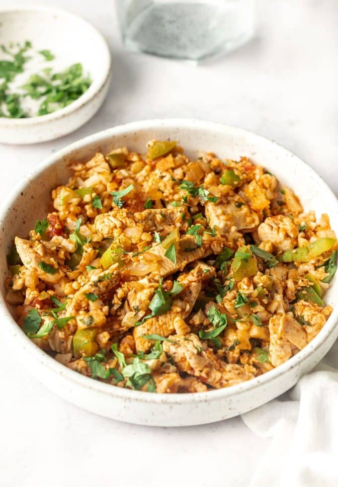 How about this Mexican Chicken Fried Cauliflower Rice for a healthy meal that’s as tasty as it is good for you? So much flavor and so easy to throw together!