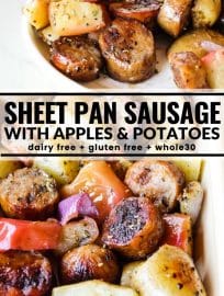 Roasting apples and potatoes together yields this beautifully sweet caramelized flavor that is just oh so very good. My original Simply Roasted Apples & Potatoes were the inspiration for this sheet pan dinner.