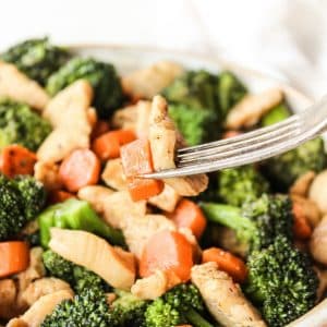 Since this entire recipe only takes 30 minutes you can whip this up for lunch or dinner. It’s especially perfect for evenings when you suddenly realize you don’t have a dinner plan. You know what I’m talking about, don’t you? Suddenly it’s 5:00 and you have no idea what everyone will be eating. This Easy Chicken & Broccoli Stir Fry is the answer.