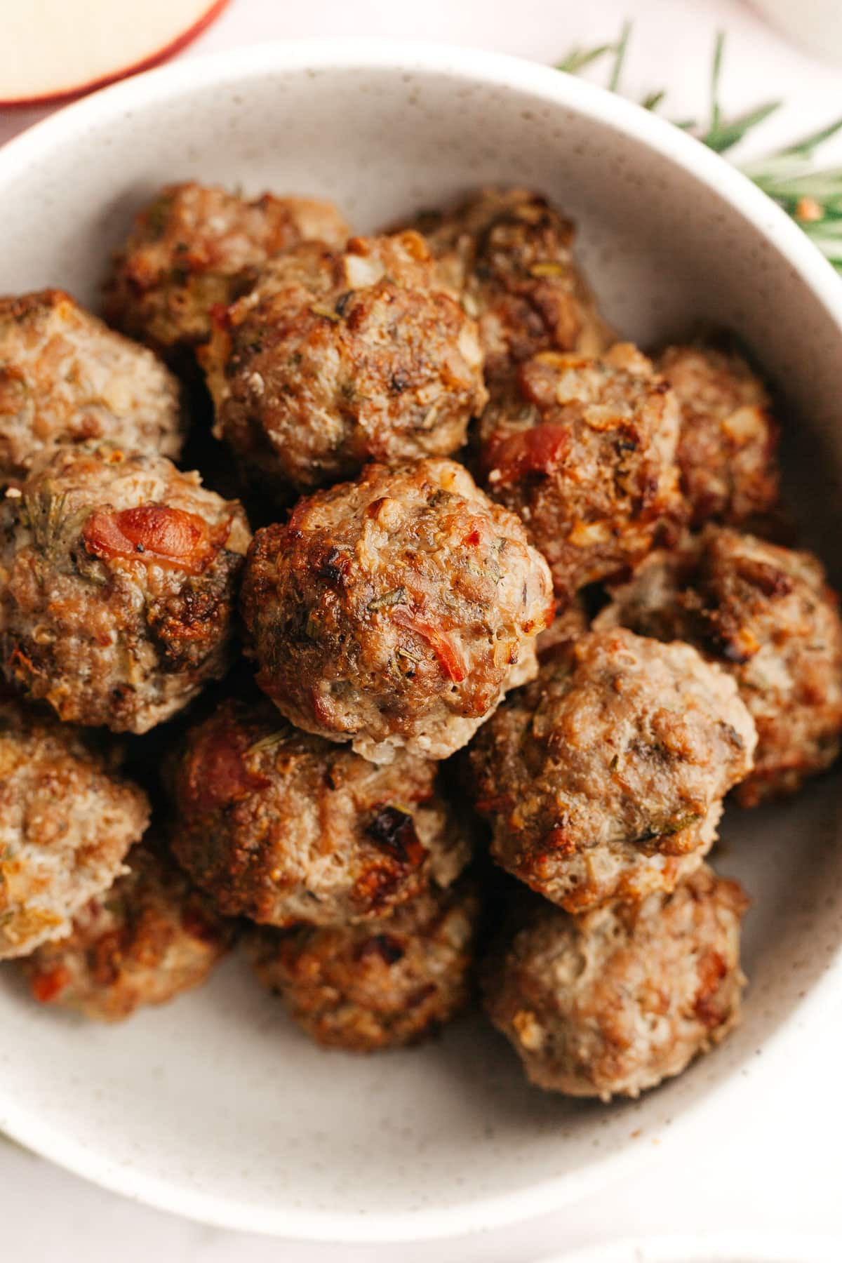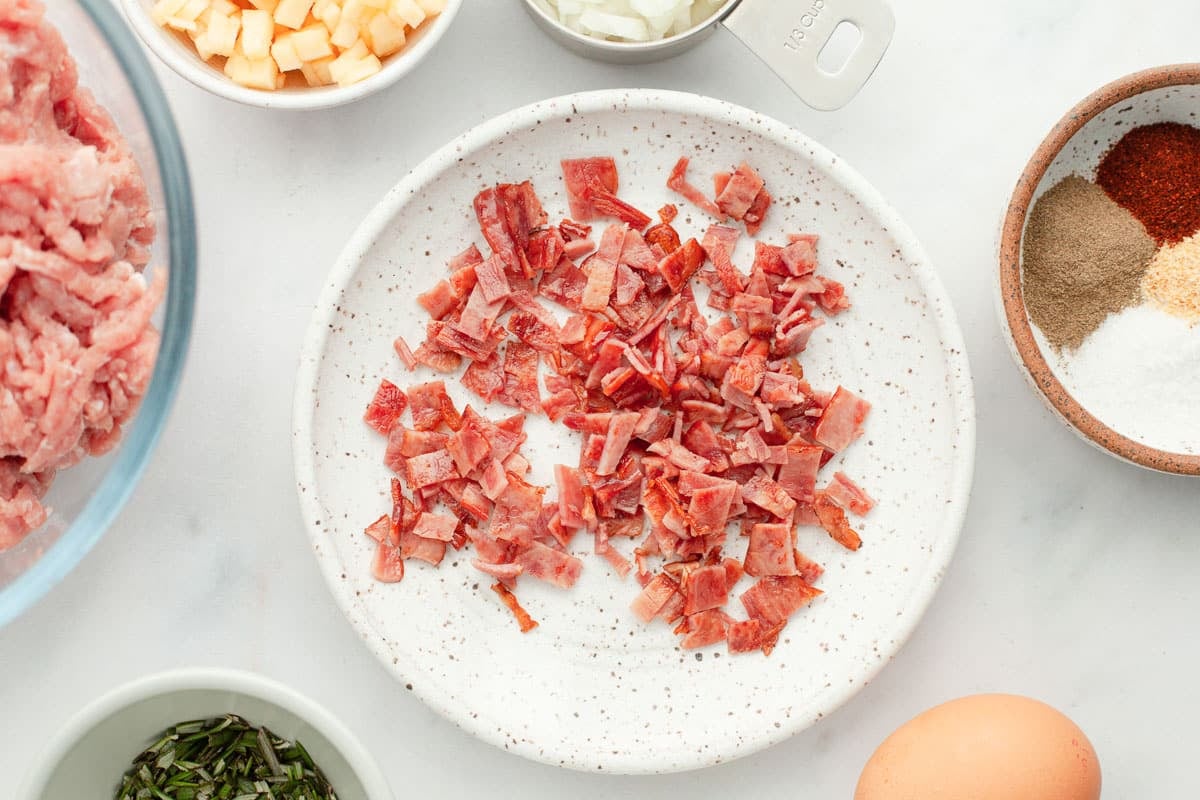 - Bacon: Bacon (along with the apples) adds some sweetness to the meatballs. You can use pork or turkey bacon.