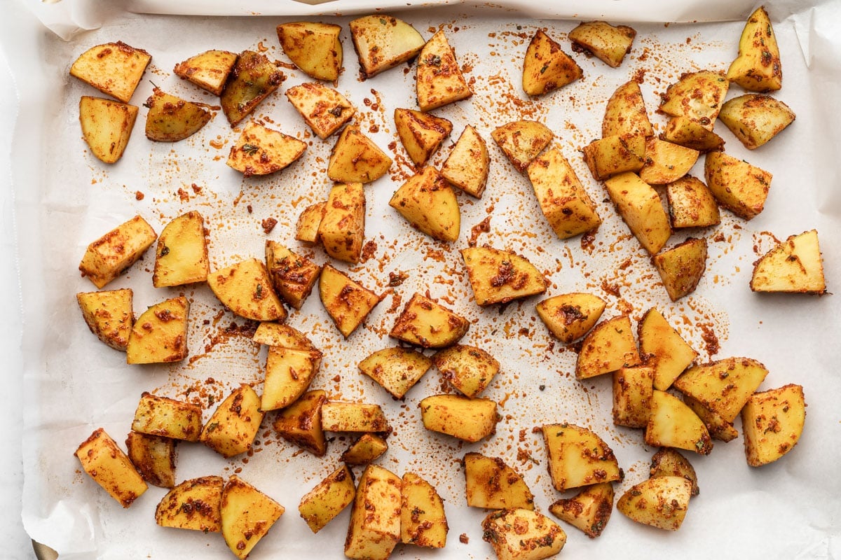 Now about those seasonings. This roasted potatoes recipe includes my top spice recommendations but you can customize this based on your own preferences too. Feel free to add fresh herbs (fresh parsley would be a good option), grated parmesan cheese, or Italian seasoning.
