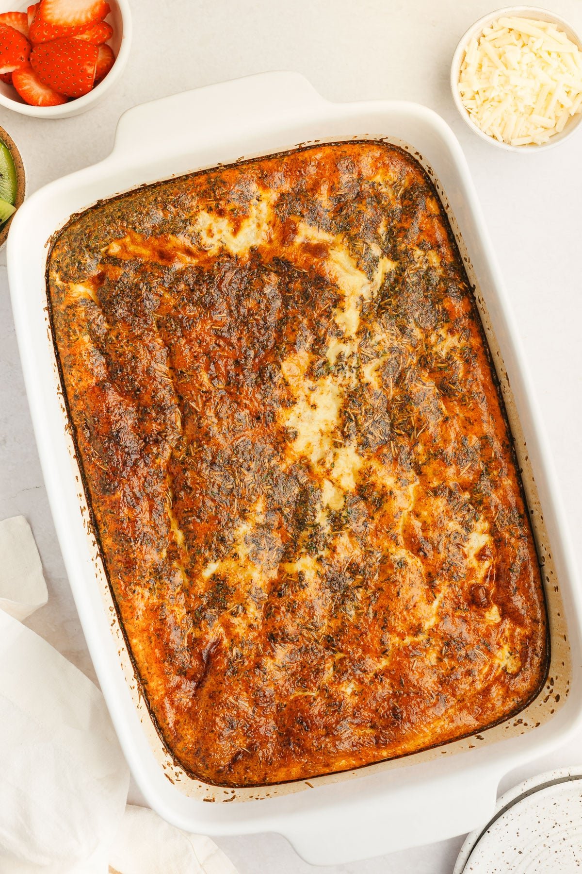 I love cheddar in this breakfast casserole but shredded mozzarella would also be a great choice.