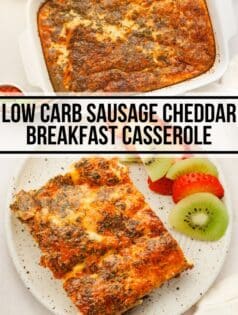 In December when I talked on instagram about making my Sausage and Cheddar Breakfast Casserole every year for Christmas morning I received so many messages asking if you can omit the bread or if there was a low carb version. So I set out to create a low carb breakfast casserole with all the classic flavors of the original.