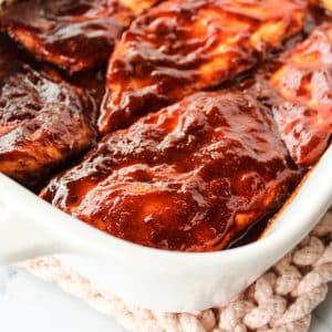 This Oven Baked Barbecue Chicken is slathered in an easy homemade sauce you’ll want to make again and again! Use boneless and skinless breasts or thighs for this family favorite entree.