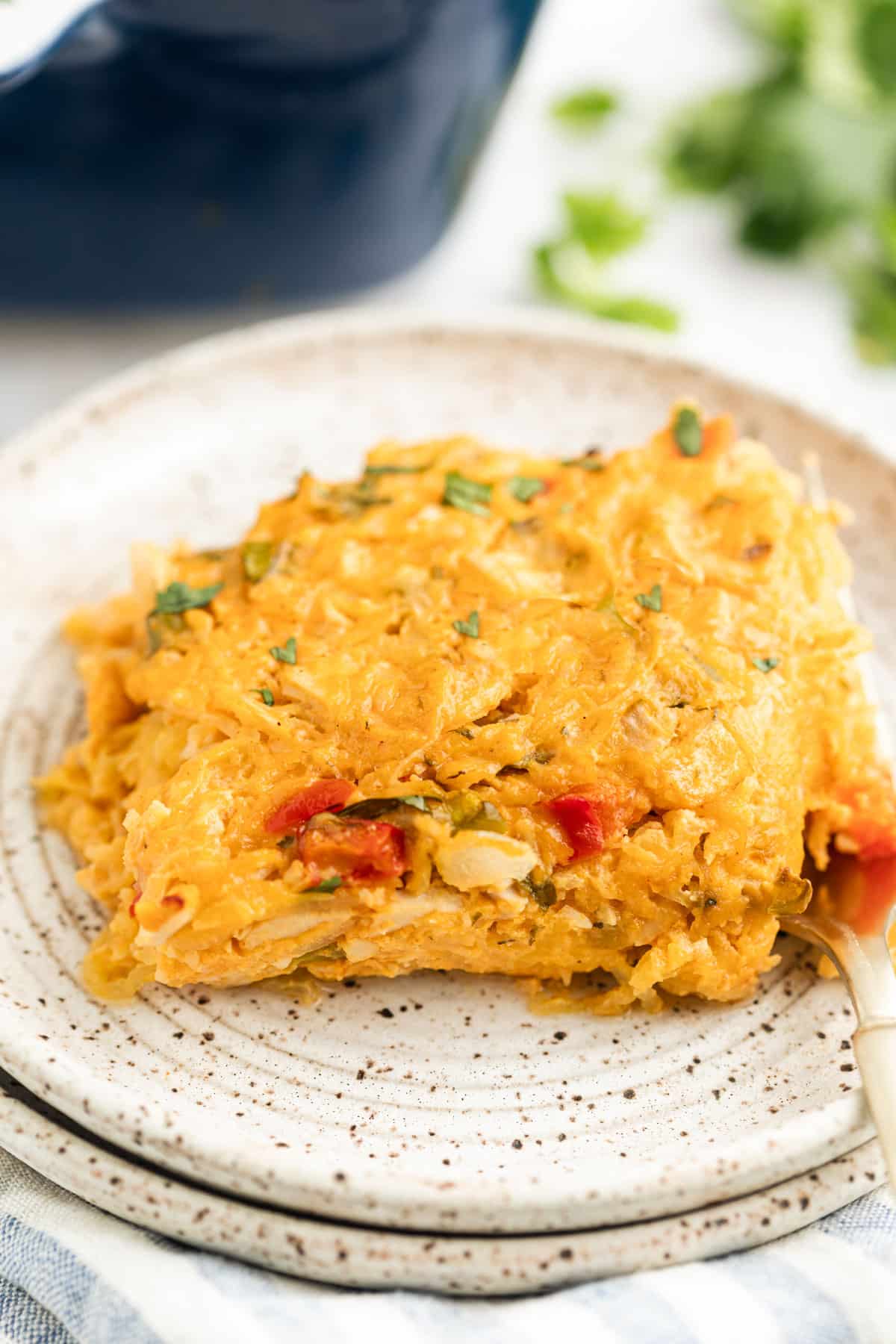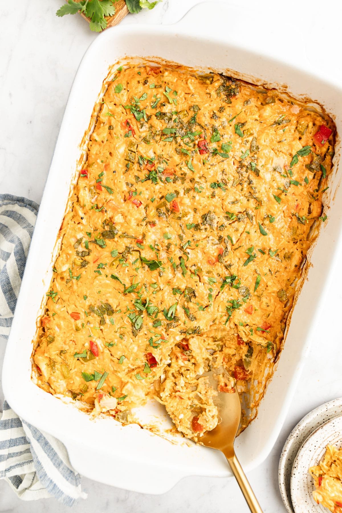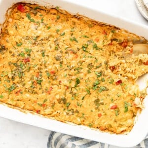 This dish feels like a truly amazing casserole that satisfies without any of the guilt that a decadent comfort food can bring. I promise you that when you pull this out of the oven you won’t be thinking about the missing noodles or cheese. It looks, smells, and tastes like heaven. A really spicy, creamy plate of heaven. It is that good.