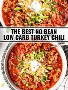 My original low carb chili recipe, No Bean 30 Minute Chili, is dang delicious. In fact it’s the most popular recipe on my website! I know many of you already make it with ground turkey instead of beef and that’s great! If it’s your favorite stick with it! But I wanted to make a version that was specially designed for ground turkey. This one has more seasoning and a can of green chiles to really make that ground turkey work splendidly. I know you’re going to be oh so happy with the end result!