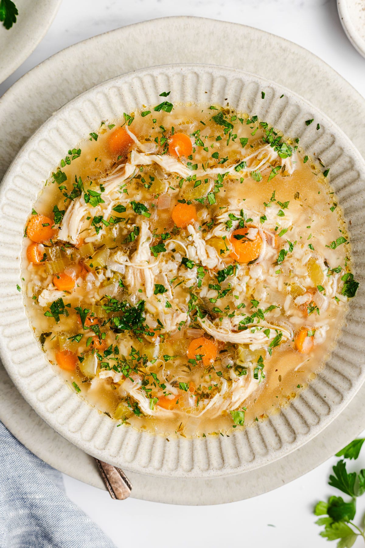 This homemade chicken and rice soup is healthy, fast, and the ultimate comfort food on a chilly evening.