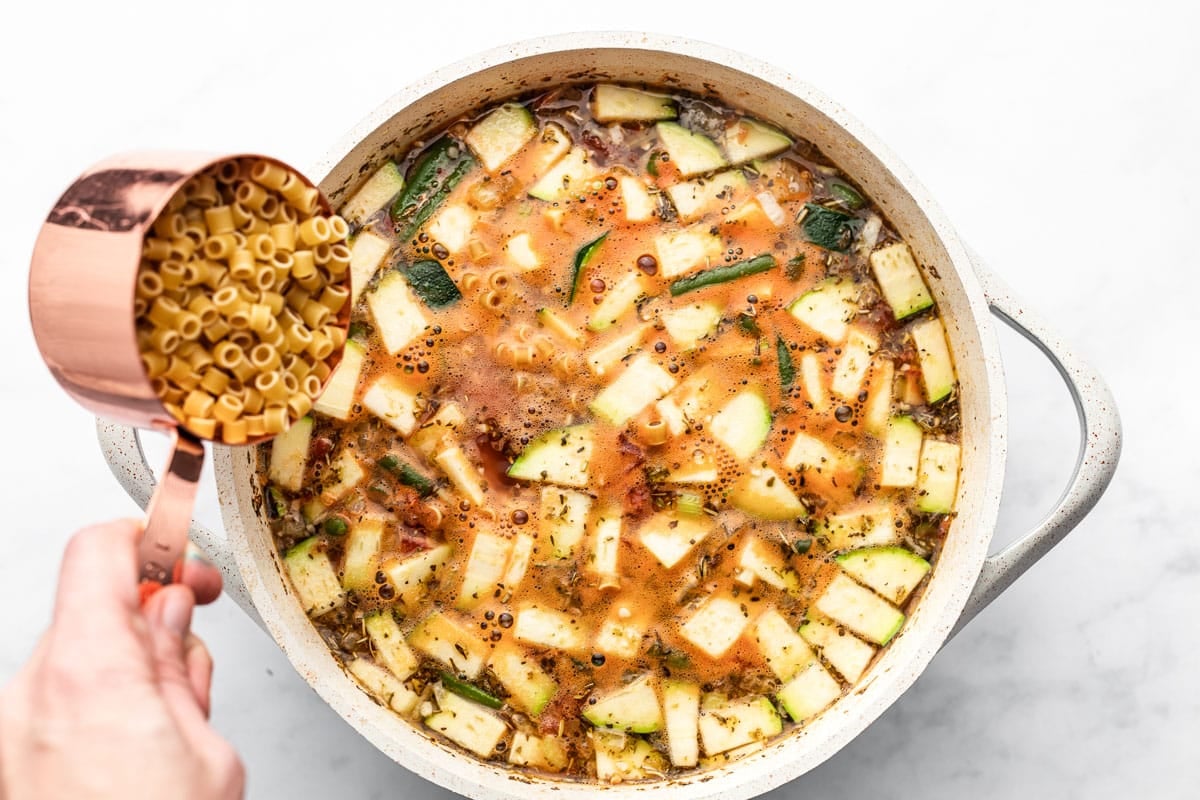 I like ditalini noodles because their size is just perfect to really mix in with all the veggies. Any other small pasta will work like elbows or shells.