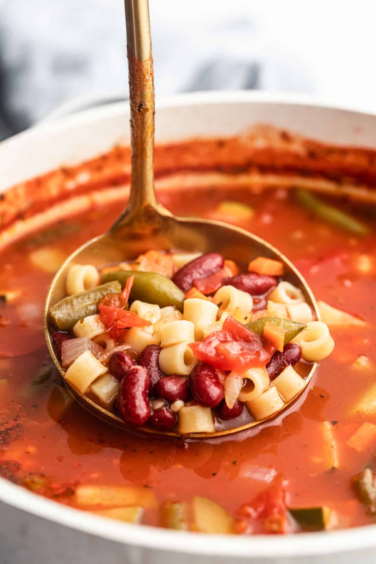I think this is the best minestrone soup recipe, friends. It’s inspired by the Olive Garden minestrone soup but as always I’ve made my version healthier and faster! This beauty is loaded with fresh vegetables, pasta, and flavor.