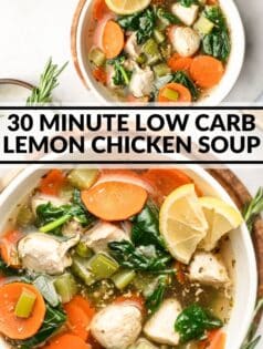 This low carb lemon chicken soup is the perfect healthy comfort food. You’ll love how light, flavorful, and easy to make it is! The lemony broth is packed with veggies and chicken. Ready in only 30 minutes!