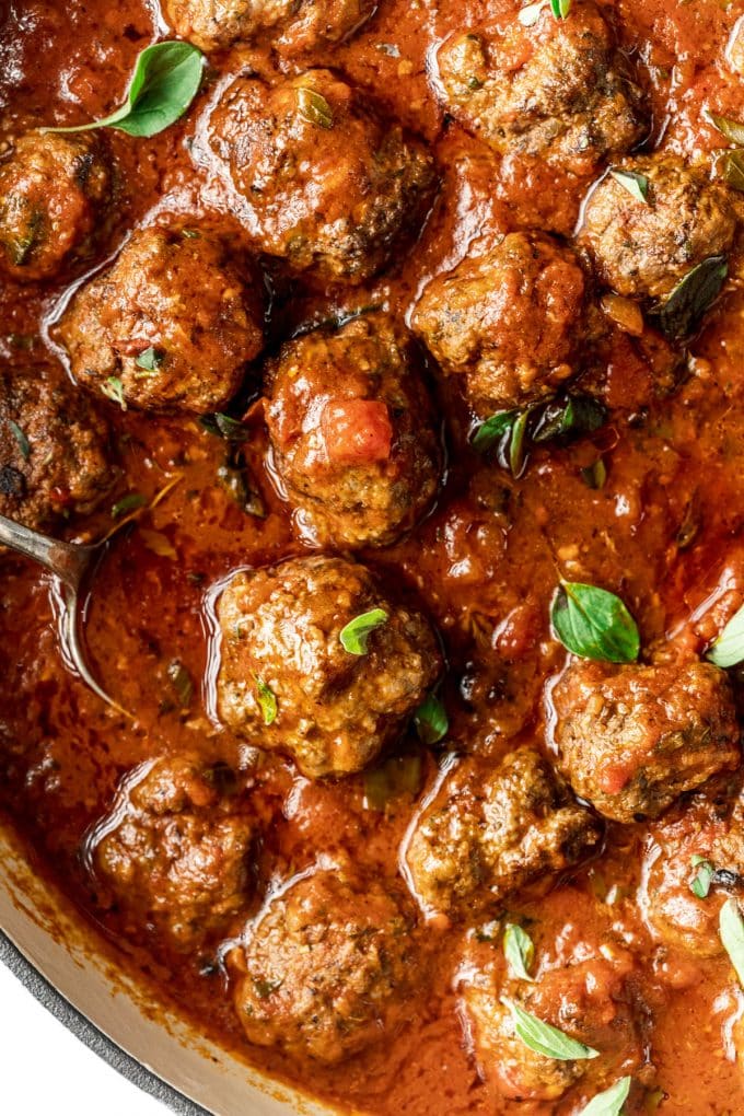 These meatballs with marinara sauce are full of flavor and packed with garlic and fresh herbs! Plus they’re dairy free and gluten free but you wouldn’t guess it from the taste.