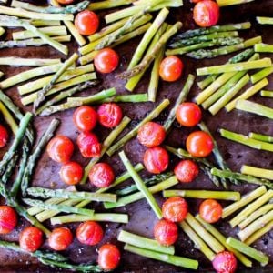 These Roasted Balsamic Tomatoes & Asparagus cook quickly. We can all appreciate that, can’t we? They require only fifteen minutes or less in the oven, making this side dish an extra easy way to add fresh vegetables to dinner even on a busy weeknight.