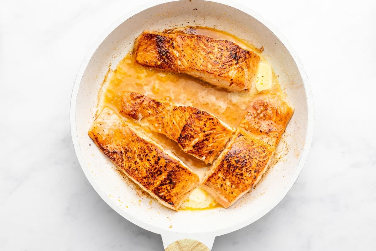 I made this last night. I have wanted to pan sear salmon but always worried it wouldnt cook through or would burn. Your recipe made it so easy to do and it was perfection. Highly recommend this salmon. We made you balsalmic brussel sprouts as a side and they also were perfect