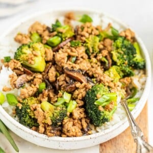 If you love a saucy entree you can serve over rice, this Healthy Ground Chicken and Broccoli Stir Fry is the recipe for you. It’s protein-packed and so quick that it’s fast enough for busy weeknights.