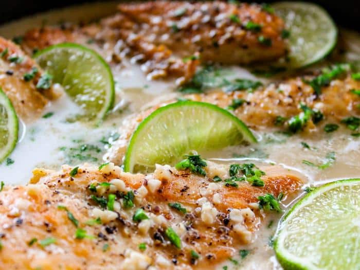 This Coconut Lime Chicken is a quick entree that earns rave reviews! The light and creamy sauce includes a bright burst of lime flavor you’re going to love.