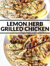 This Lemon Herb Grilled Chicken was a home run right away. David took one bite and pronounced that it’s better than my Ultimate Marinated Grilled Chicken. Now that’s a mighty bold statement because that chicken recipe is obscenely good, but this (brace yourself) might actually be the very best chicken.