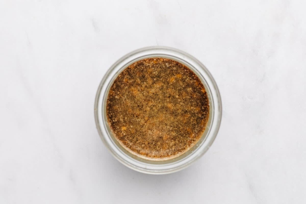 While the ground chicken is cooking, add the sauce ingredients to a jar. Screw the lid on the jar and shake until well combined. You can also stir together the ingredients in a small bowl.
