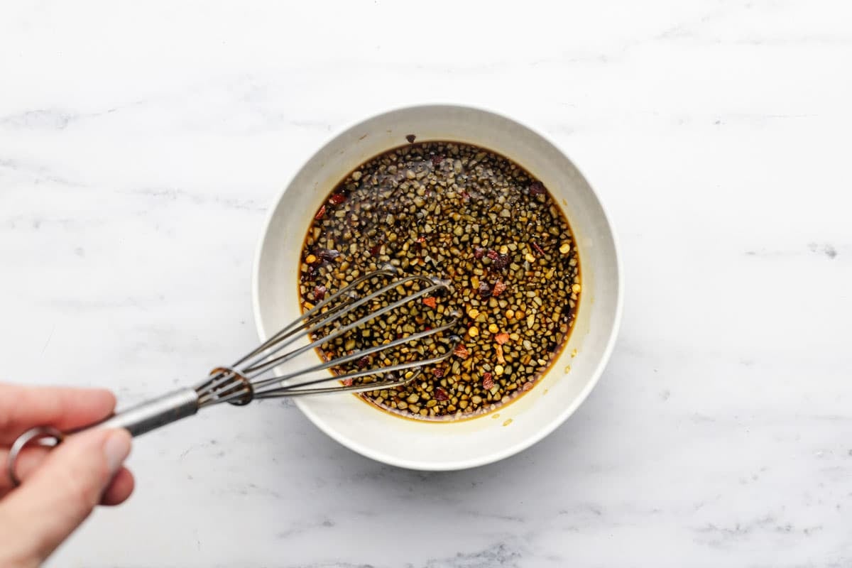- Combine all sauce ingredients in a bowl and whisk together. Set aside.