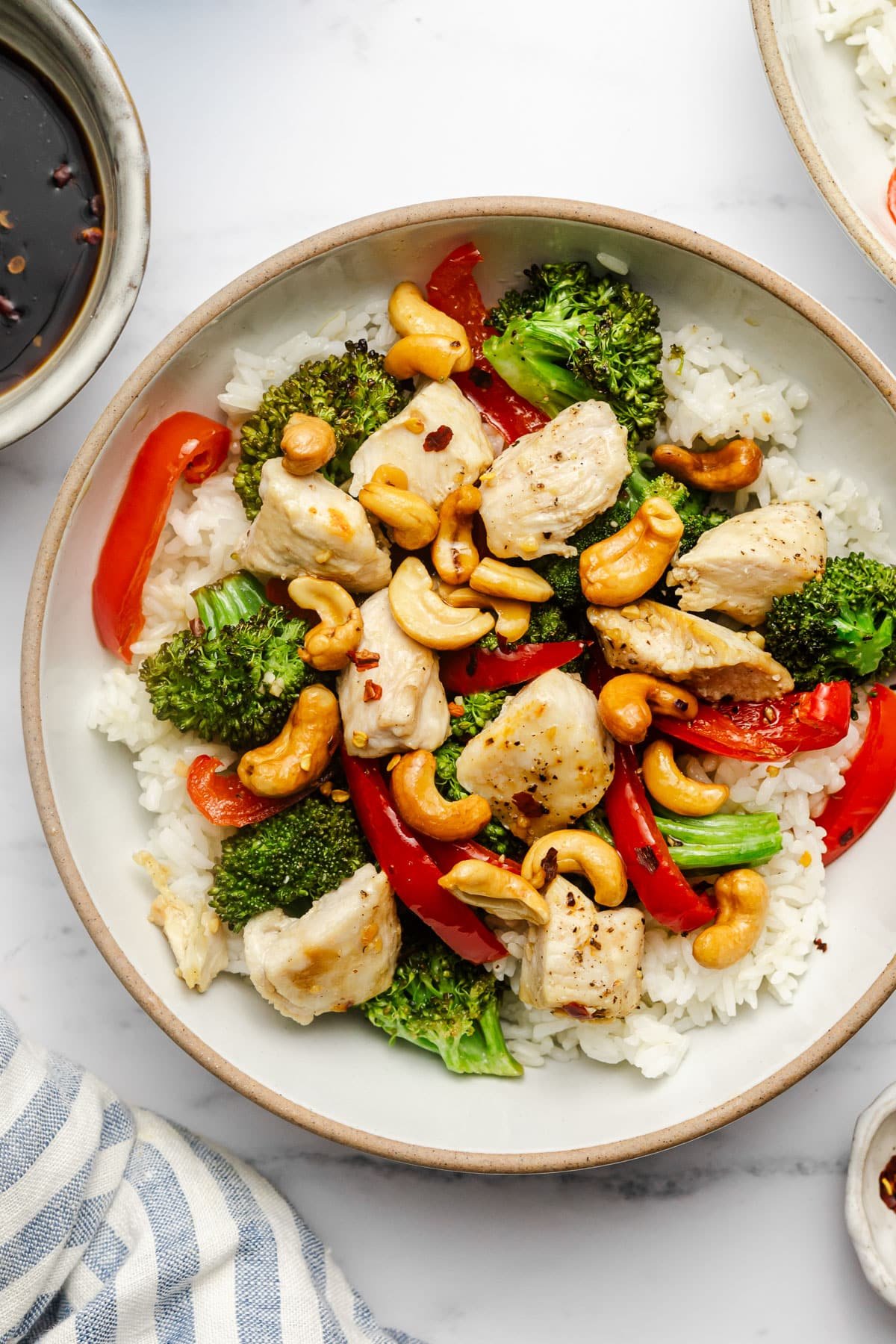 I love to enjoy this healthy cashew chicken recipe for meal prep. Refrigerate in an airtight container for up to 3 to 4 days. Warm on the stovetop or in the microwave.