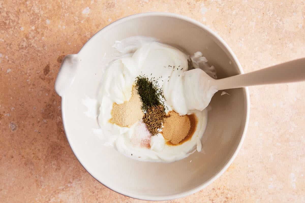 Lately I’ve added greek yogurt to so many of my savory dinners at home. I love how the creamy texture elevates any meal without much effort or extra calories. While I enjoy it plain, I typically stir in dried herbs and seasonings to really give it flavor. Then I add it to chicken, beef, seafood, and roasted vegetables or potatoes.