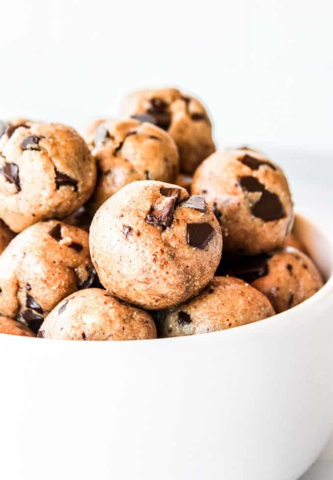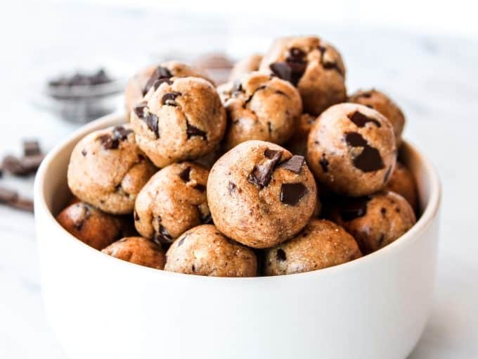 I love these dough bites for meal prep. I know they taste decadent (and like a cookie!) but the ingredients are completely healthy! These dough bites are excellent for grab and go breakfasts, snacking, or desserts.