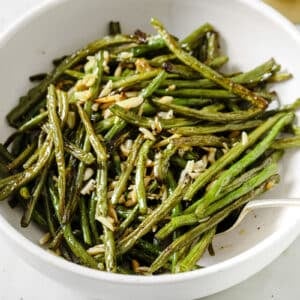 These roasted green beans with toasted almonds will be your new favorite side dish. This is an easy recipe with the simple flavors of lemon and garlic. It’s a perfect side dish for weeknight dinners or on your holiday table.