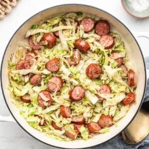 Tender sautéed cabbage and sausage together create a remarkably easy meal in under 30 minutes! Plus it’s low carb!