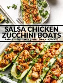 These Salsa Chicken Zucchini Boats require very few ingredients and minimal prep! They’re a simple lunch or dinner idea that’s so easy.