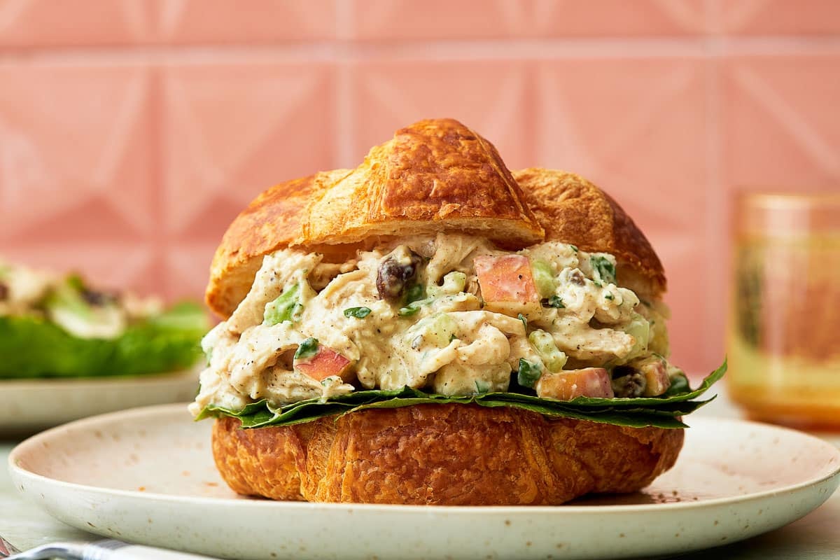 Use this recipe to create a chicken salad sandwich by scooping in between two slices of toasted bread or into a croissant.