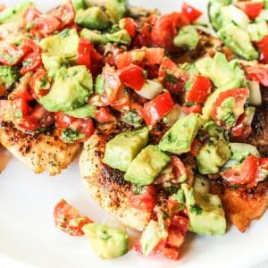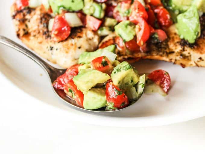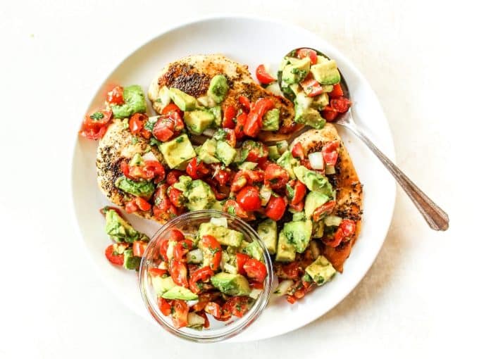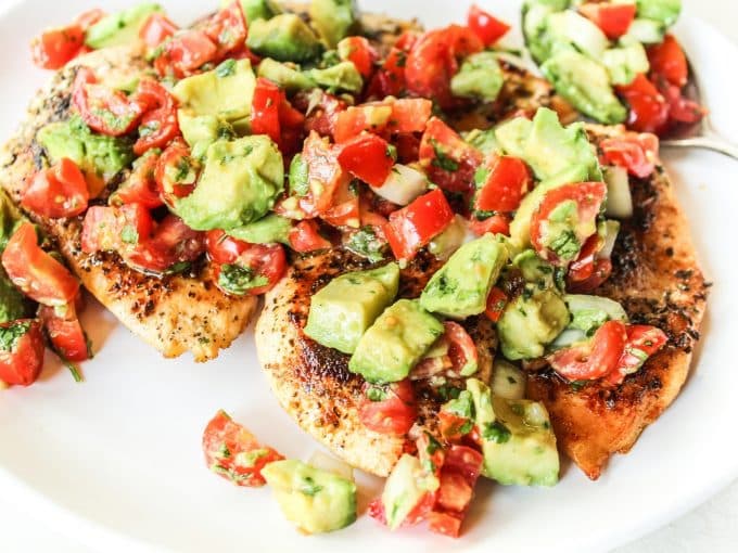 Beautifully seasoned sautéed chicken is topped with an easy avocado salsa in this quick entree! Ready in only 20 minutes!