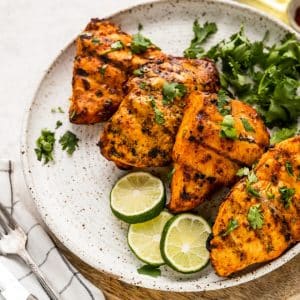 This chicken is delicious with grilled or roasted veggies and a simple salad. The chipotle lime marinade also makes this chicken a perfect fit for burrito bowls, rice bowls, and tacos.