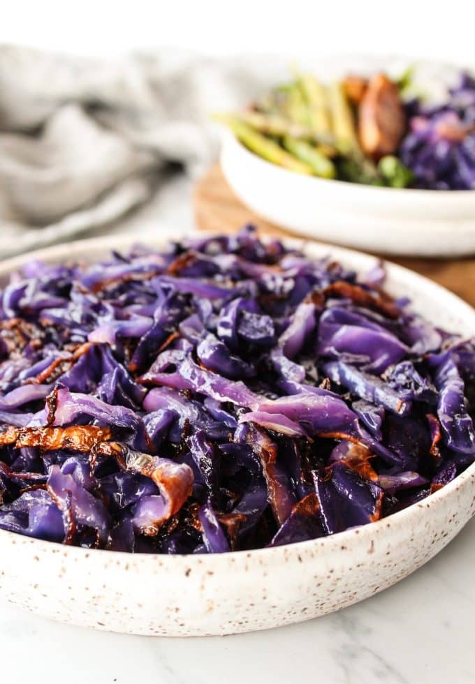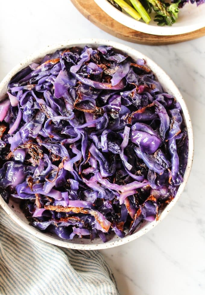 Red cabbage (often called purple cabbage) is a beautiful side dish. I’m teaching you how easy it is to roast it so that it’s tender with crispy edges!