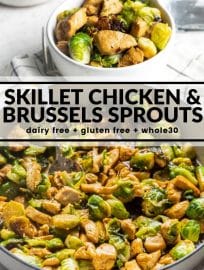 For this absolutely lick-your-plate-worthy Skillet Chicken & Brussels Sprouts recipe I’m using the same simple sauce ingredients I use in my Sheet Pan Cashew Chicken. (Public Service Announcement: if you haven’t made that one yet, click that link because you really should. It is addictive and crazy easy.)