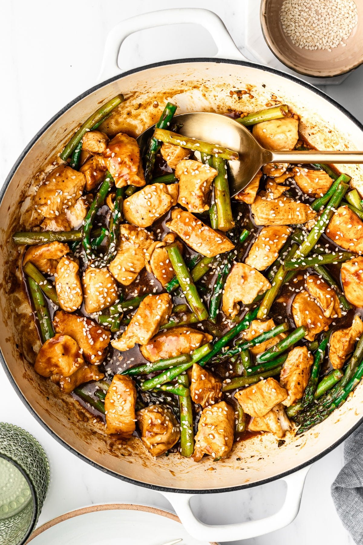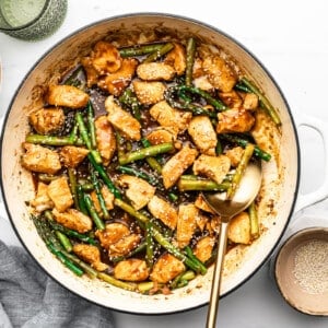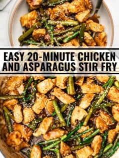 This easy stir fry recipe includes tender chicken, fresh asparagus, and a delicious savory sauce. It’s a healthy dinner that’s ready in only 20 minutes!