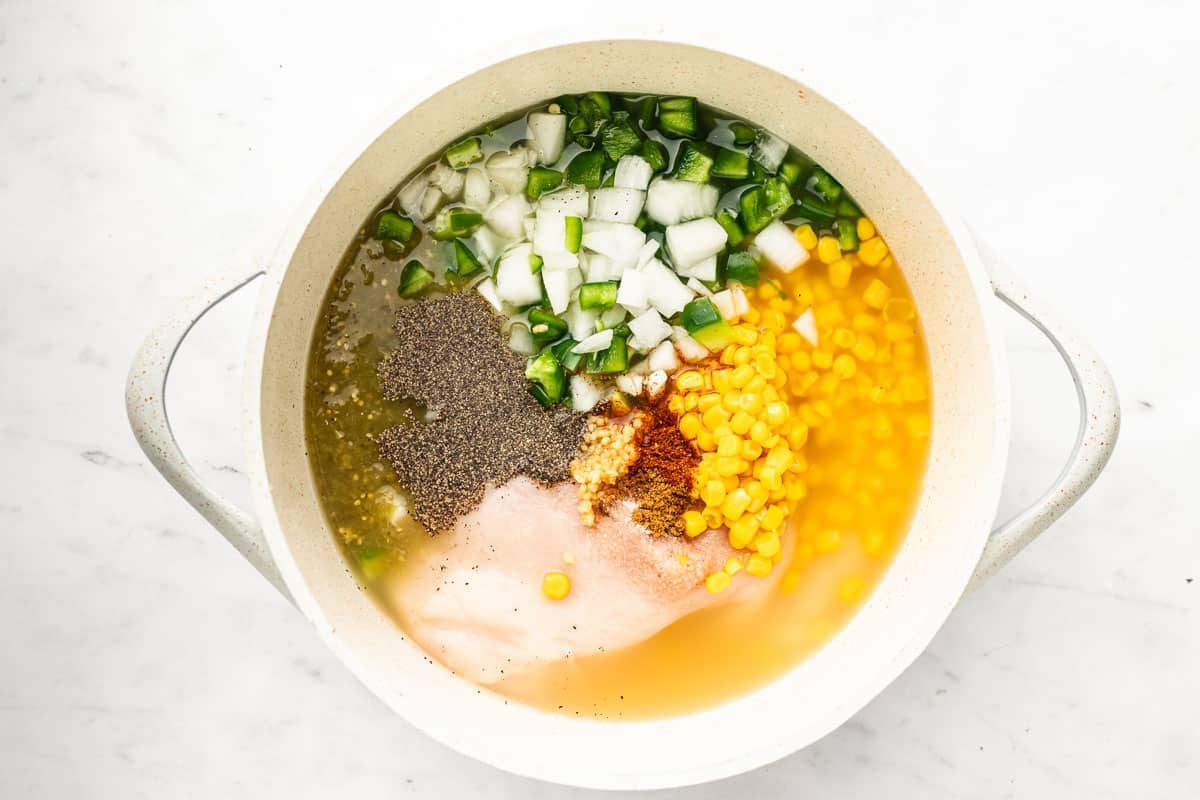 - Seasonings: Weโre using plenty of chili powder, cumin, salt, and black pepper to beautifully flavor this easy salsa verde chicken soup. These should all be pantry staples you already have on hand.