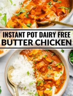 This flavorful butter chicken is dairy free and so easy to make in your instant pot. Serve over rice to take advantage of every drop of the creamy tomato-based sauce.