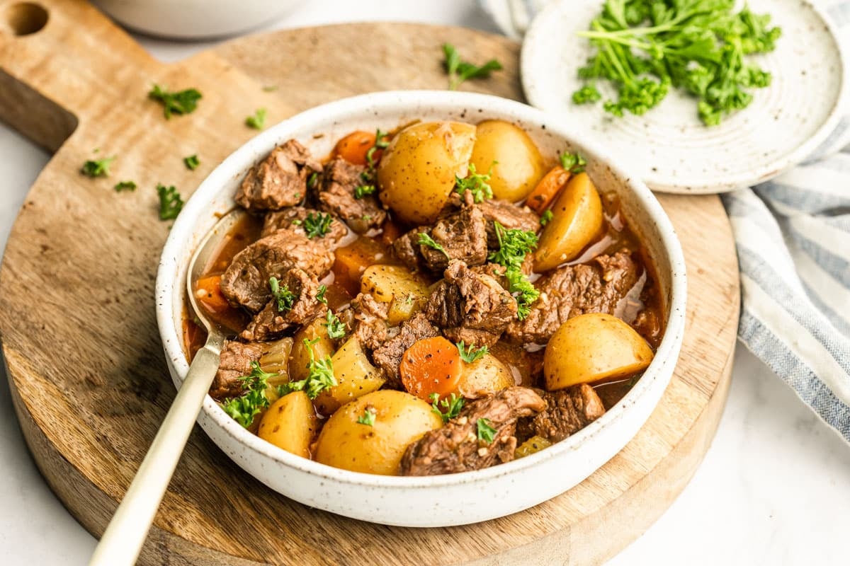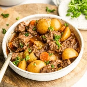 I top my finished stew with chopped fresh herbs because I’m always pro fresh herbs wherever possible and literally always have some in the fridge I want to use up before it goes bad. You can always skip that if you’re not so inclined.