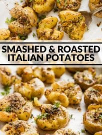 These Smashed & Roasted Italian Potatoes are a twist on one of my favorite recipes, Rosemary Garlic Smashed Potatoes. That’s a lot of smashing and roasting going on. And that’s a very very good thing, friend.