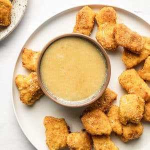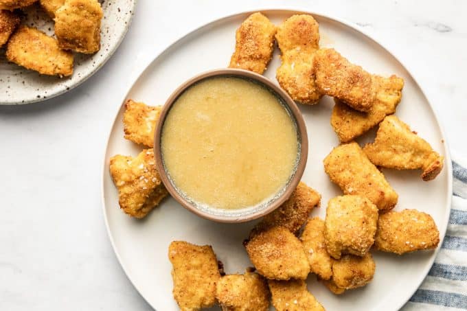 I love to pair these chicken nuggets with my 3-Ingredient Honey Mustard (pictured in the photos) but ketchup, ranch dressing, and barbecue sauce are also great dip options!