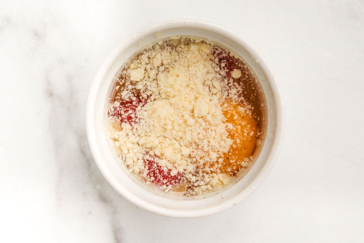 - Spray the inside of a 4 to 6 oz ramekin with cooking spray (I use an avocado oil spray) or grease the inside of the ramekin with a little olive oil.
