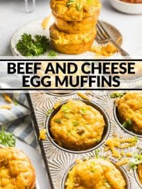Love beef and cheddar cheese? Oh these egg muffins are for you! They’re the perfect portable breakfast you can even make ahead of time!