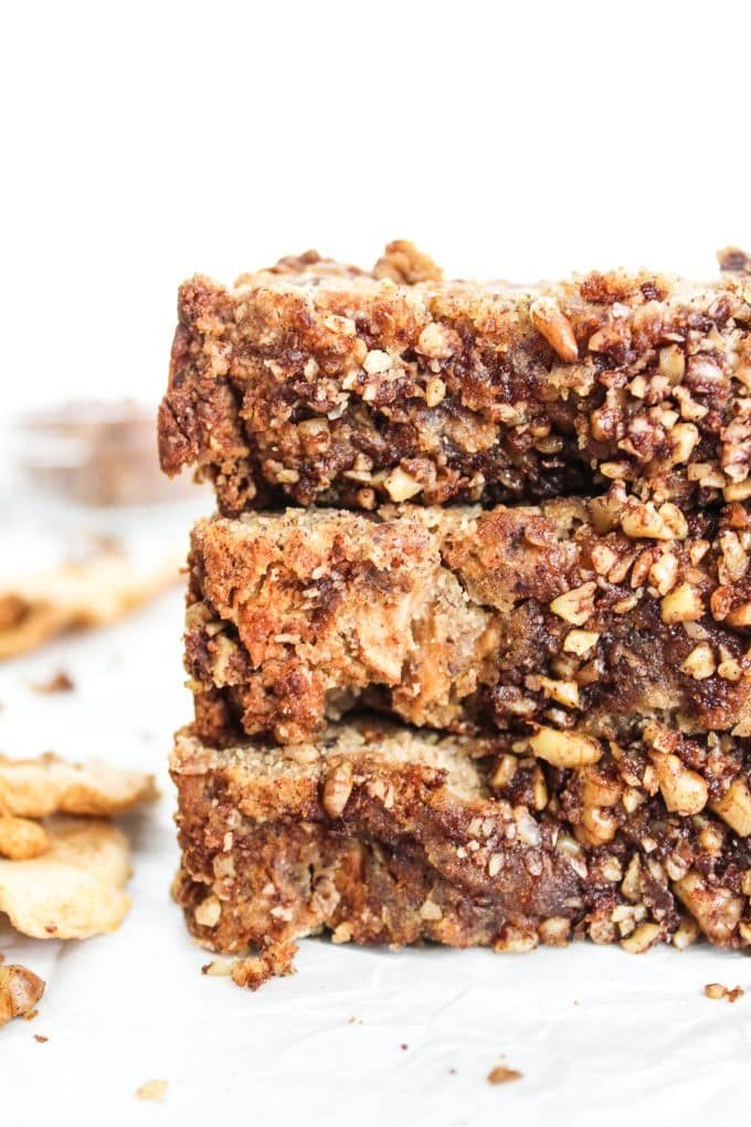This bread was heavily inspired by a new banana bread I’ve been working on that will go live later this month (It’s live! Here it is: Grain Free Chocolate Chip Banana Bread). I took that recipe and adapted it to include apple and cinnamon flavors. No bananas in here of course. And you better believe I included a sweet crumble to really make it special. That crumble, ya’ll. It’s only 4 ingredients and so good. Don’t you dare skip it!