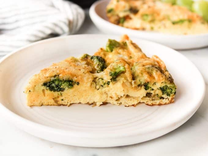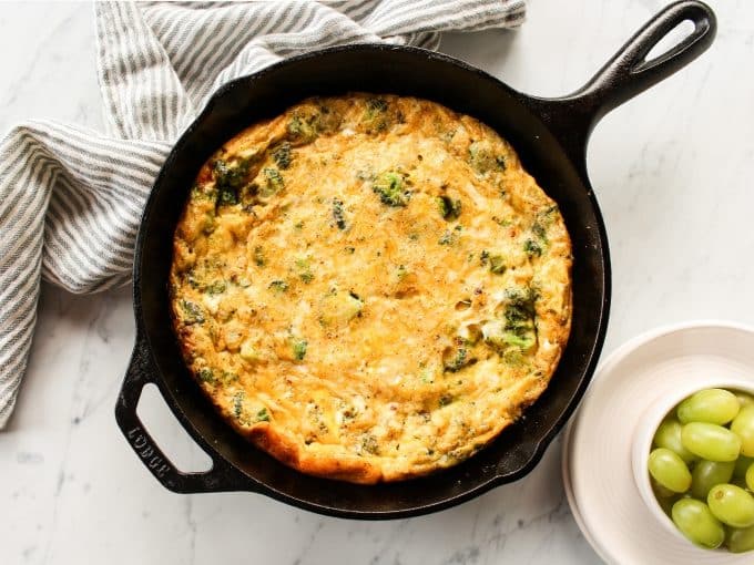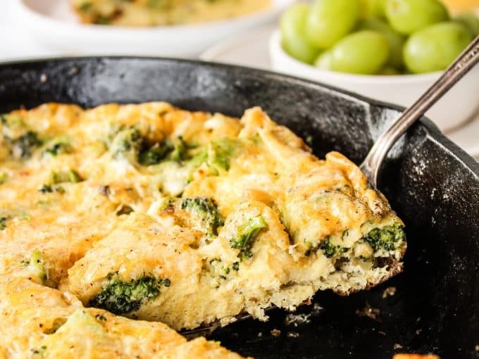 This deliciously cheesy frittata is loaded with broccoli and so easy to make! My family loves this for a weekend breakfast or brunch. Serve with a side of bacon, potatoes, fruit, or a simple salad.
